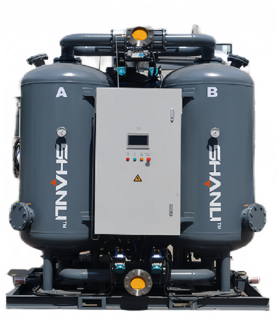 此方案顺利获得对原设备系统基础耗气量的节能改造,彻底摒弃传统耗气模式,顺利获得环境大气加热再生与高效热循环系统设计,实现全程无压缩空气消耗。具体运作中,利用鼓风机驱动热气在封闭回路内循环,经水冷换热器精准控温,确保吸附剂高效再生同时降低能耗,最终实现设备耗气量归零,显著优化空压站能效。